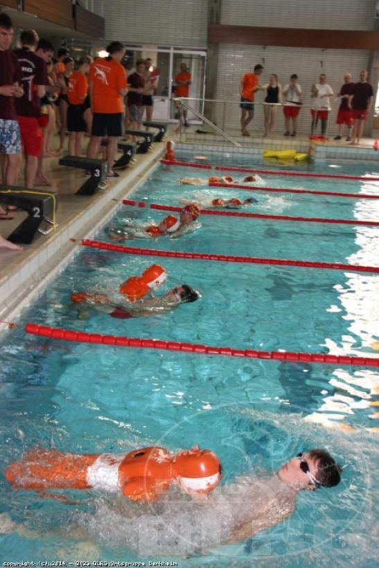 Endlich hat es wieder geklappt. Am 18. und 19. April 2015 fanden die jährlichen Bezirksmeisterschaften der Bezirke Esslingen, Reutlingen und Tübingen in Pfullingen statt. Es war ein sehr schönes Frühlingswochenende an dem die Ortsgruppe Berkheim endlich mal wieder eine Mannschaft, zu den am Samstag stattfindenden Mannschaftswettkämpfen schicken konnte. In unserer Mannschaft, die in der Altersklasse "Offen" startete, schwammen Daniel Keim, Max Müller, Maximilian Brunner, Fabian Keim und Patrick Schmitt. Alle hatten sich für die diesjährigen Meisterschaften viel vorgenommen. Die Freude war daher auch sehr groß, als man die Prüfungen zur Herz-Lungen-Wiederbelebung am Vormittag mit der vollen Punktzahl meisterte. Pro bestandener ... Mehr erfahren