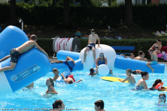 Die Deutsche Lebensrettungsgesellschaft (DLRG) Berkheim lädt schon seit vielen Jahren am zweiten Juli-Wochenende zum Freibadfest ein. Bei hochsommerlichen Temperaturen konnte sich die Ortsgruppe in diesem Jahr über zahlreiche Gäste freuen. Beim diesjährigen Freibadfest der DLRG Berkheim hat es Petrus mit den Teilnehmern und Organisatoren gut gemeint - wie überhaupt bei den Festen in den ver-gangenen Wochen. Hochsommerliche Temperaturen lockten viele ins Freibad und die DLRG Berkheim konnte sich an beiden Tagen über großen Zuspruch freuen. Die Feierlaune und Stimmung war bei den Veranstaltern wie Gästen gut. Gestartet war das Fest am Samstagnachmittag aufgrund des schönen Wetters spontan für die Gäste etwas früher als geplant. Am Abend unterhielt der Musikverein Aichelberg die Besuch ... Mehr erfahren
