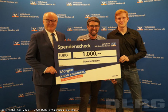 Die Volksbank Mittlerer Neckar eG hat im Rahmen ihrer Spendenaktion „Gemeinsam mehr bewegen“ ihre Mitglieder dazu aufgerufen, gemeinnützige Projekte aus der Region für eine Förderung vorzuschlagen. In diesem Jahr stellte die Bank 150.000 Euro für Projekte zur Verfügung. Zusätzlich gab es für Bildungsprojekte insgesamt noch einmal 20.000 Euro extra. Mehr als 350 Förderanträge von Sportvereinen, Schulen, Kindergärten, Musikvereinen, sozialen Einrichtungen und weiteren Einrichtungen und Organisationen wurden eingereicht. Eine Jury aus Mitgliedern der Bank hat die eingereichten Projekte gesichtet und ausgewählt. Wir als DLRG-Ortsgruppe Berkheim haben zur Beschaffung eines Defibrillators (AED) inklusive Kinderschlüssel einen Betrag von 1.500 Euro bekommen. Darüber freuen wir uns riesig. Viel ... Mehr erfahren