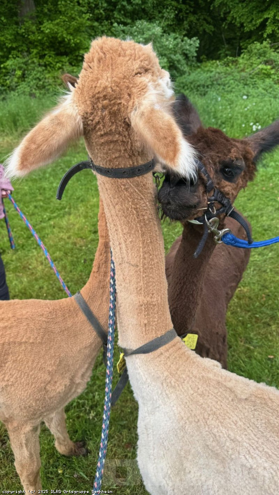 Am Samstag, den 3. Mai 2025, fand unser diesjähriger Jahresausflug der DLRG Ortsgruppe Berkheim statt – und der führte uns dieses Mal in tierisch entspannte Gefilde: zur Alpaka Farm Schaber in Nürtingen. Trotz regnerischem Start klarte das Wetter rechtzeitig auf, sodass wir das geplante Alpaka-Trekking trocken und bei zunehmend angenehmen Temperaturen genießen konnten. Insgesamt 13 Mitglieder nahmen teil und jeder, der mochte, durfte ein Alpaka an der Leine führen. Die flauschigen Wandergefährten – darunter Chico, Conny und Atlantika – sorgten nicht nur für viele Lacher, sondern auch für ein ganz besonderes Naturerlebnis. Wer lieber ohne Tier unterwegs war, durfte sich im Hofladen mit kuscheligen Socken aus Alpakawolle eindecken. Nach einer kleinen Wanderung mit herrlichem Ausblick u ... Mehr erfahren