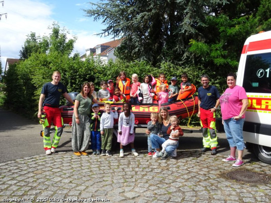 Heute wurde es nass – naja, fast! Denn plötzlich, mit lautem TATÜTATA, stand hinter dem Kindergarten Kunterbunt ein echtes Rettungsboot – mitten auf dem Trockenen! Kein See, kein Fluss, einfach direkt auf dem Rondell vor dem Spielplatz. Die Kinder staunten mit offenen Mündern: Wie kommt das denn hierher?! Des Rätsels Lösung: Der Papa von einem unserer Kinder ist DLRG - Rettungsschwimmer – ein echter Wasserheld, hatte uns besucht. Mit im Gepäck: spannende Geschichten, jede Menge Ausrüstung und eben dieses beeindruckende Boot, das sonst bei Hochwasser oder im Einsatz auf Flüssen unterwegs ist. Heute aber machte es Station bei uns – und das war ziemlich aufregend! Der Rettungsschwimmer-Papa Jan und sein Kamarad Hugo erzählten uns von den DLRG-Schwimmkursen, bei denen Kinder lernen, wie man ... Mehr erfahren